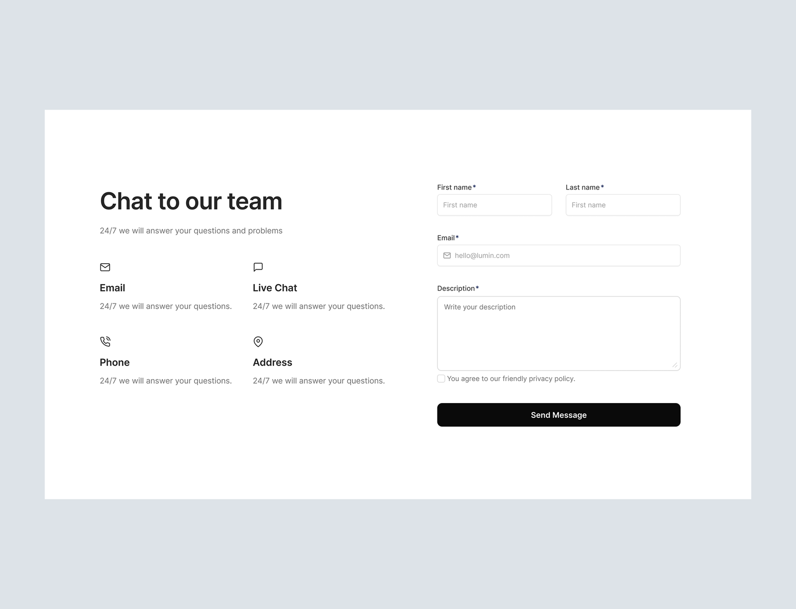Test ideas, build websites and application 10X faster with 10,000 ready-to-use Lumin assets. Pick a section, tweak few things, and go live. No overthinking, no starting from scratch.